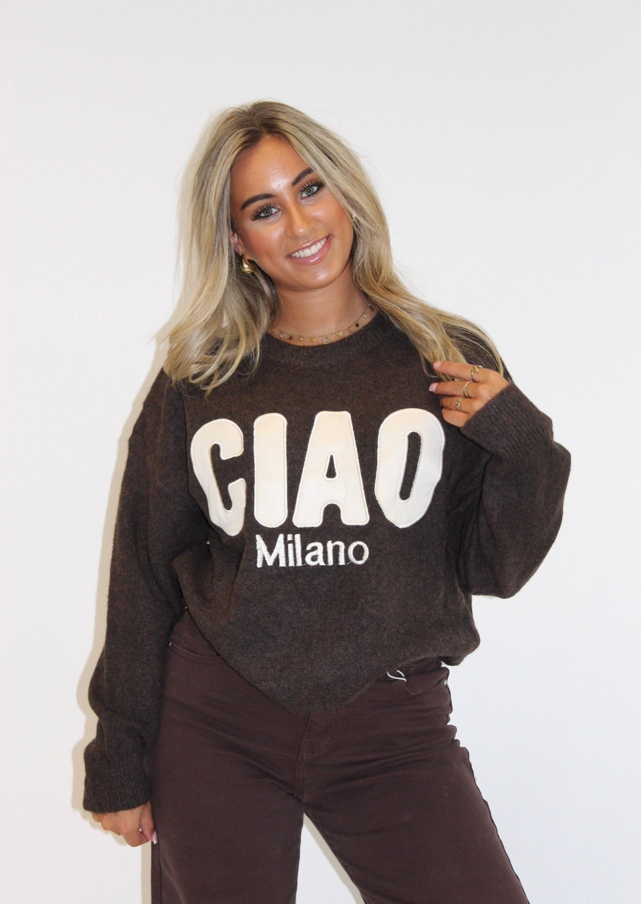 Widia trui ciao denim bruin