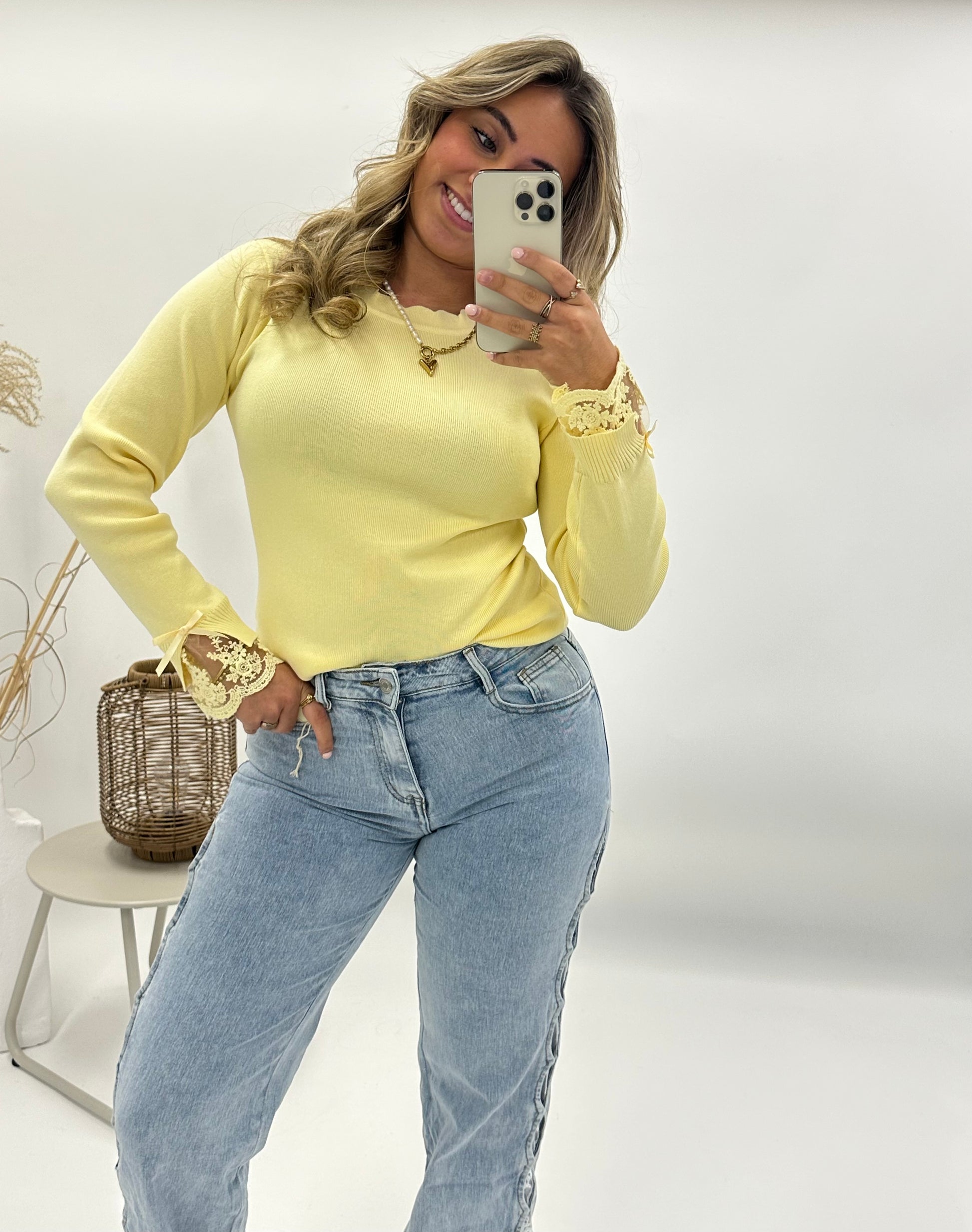 Deze elegante top in een zachte pastelblauwe tint is een echte eyecatcher. Het model heeft een comfortabele, losvallende pasvorm met een ronde hals en korte mouwen, gecombineerd met verfijnde kanten lange mouwen voor een speels en vrouwelijk effect. De soepele stof voelt prettig aan op de huid en maakt de top ideaal voor zowel dagelijks gebruik als een nette gelegenheid.