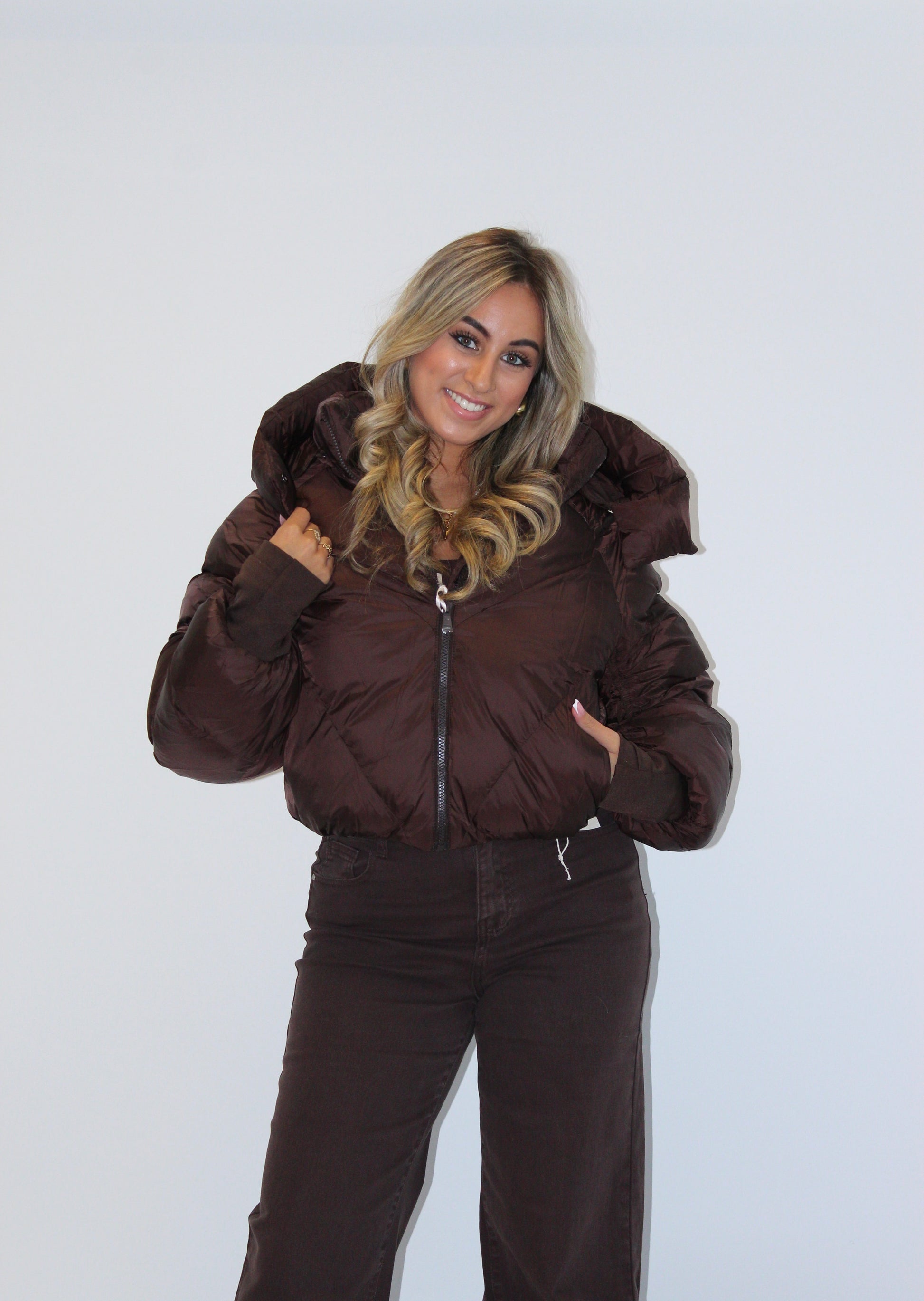 Deze jas is in de kleur bruin, het is een gevoerde winterjas. Het heeft een capuchon en is lekker warm. Dit is toch de perfecte jas die je moet hebben!