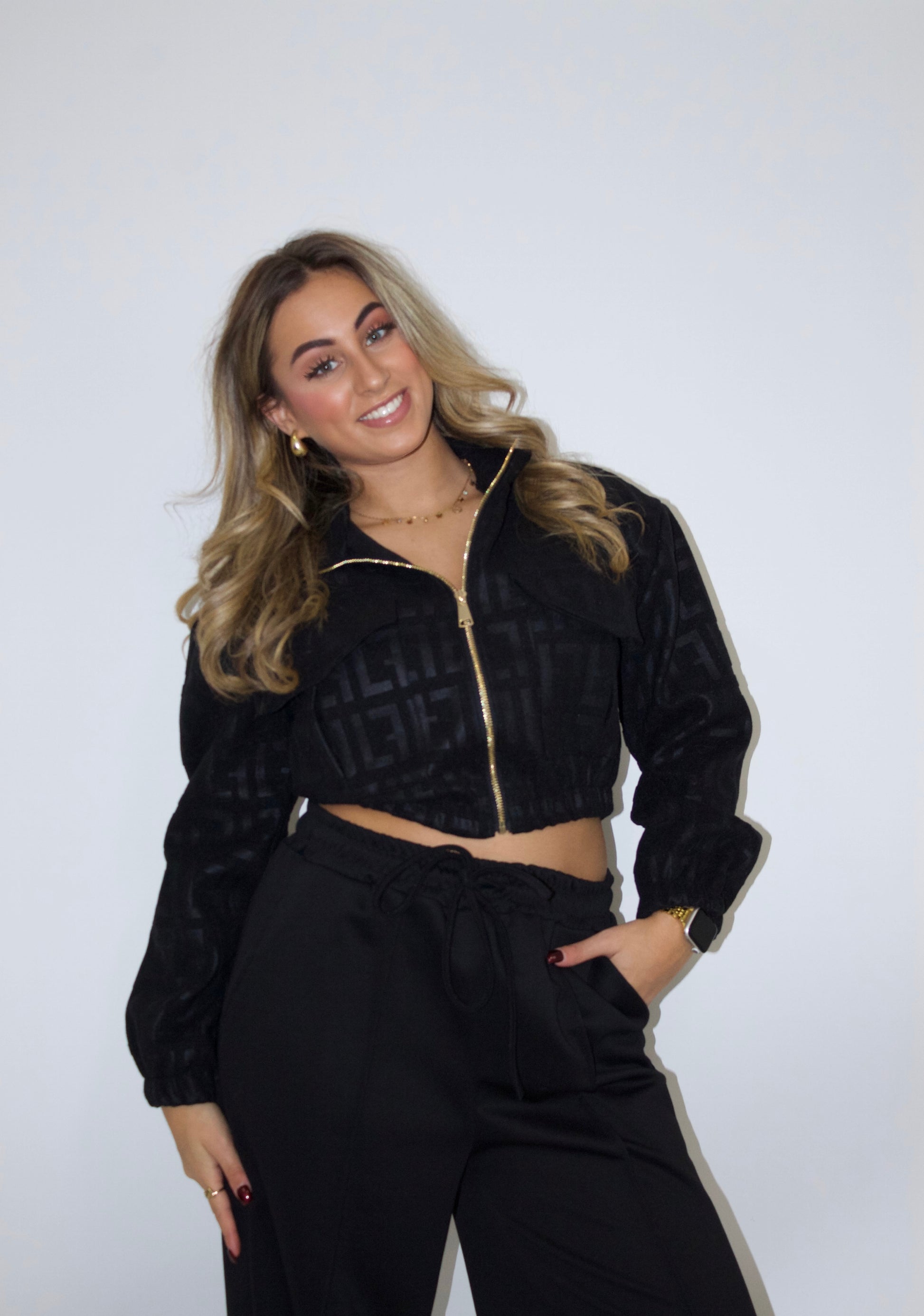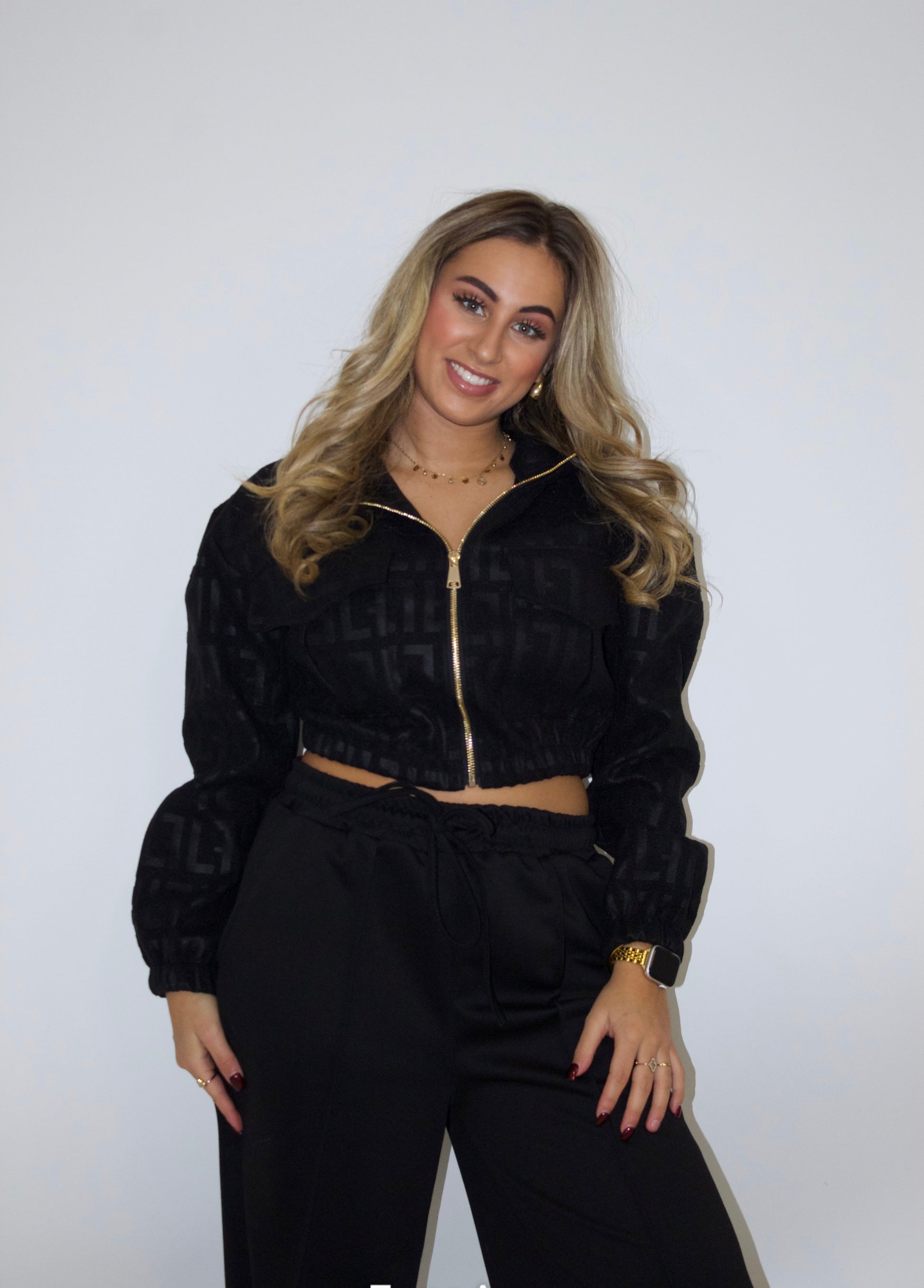 Het jasje is in de kleur zwart met een goude rits en een patroontje erin! Het is nu voor het tussen seizoen een heerlijk jasje! Leuk te combineren met een zwarte pantalon of jeans.